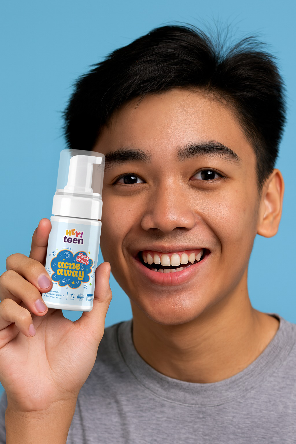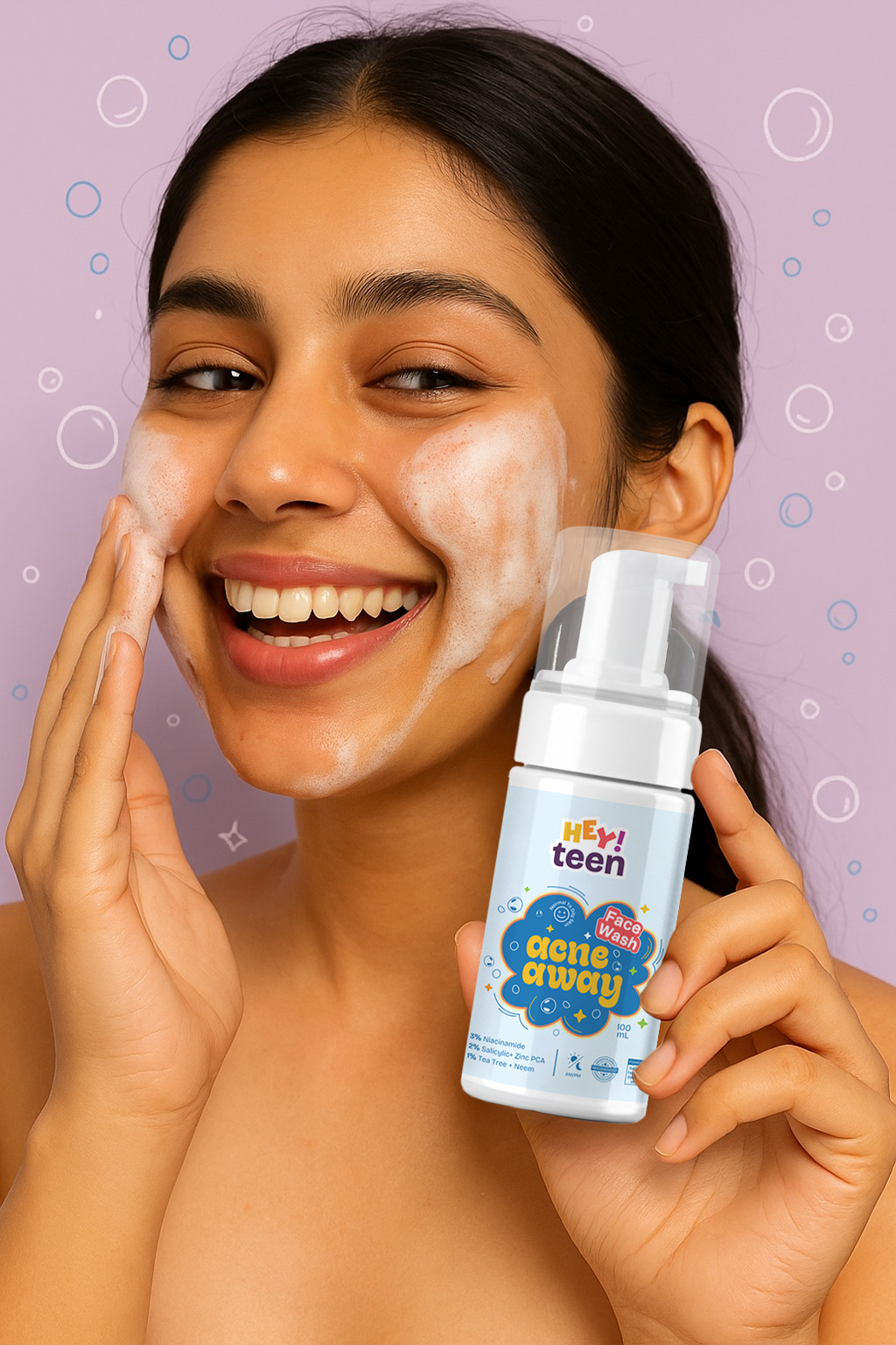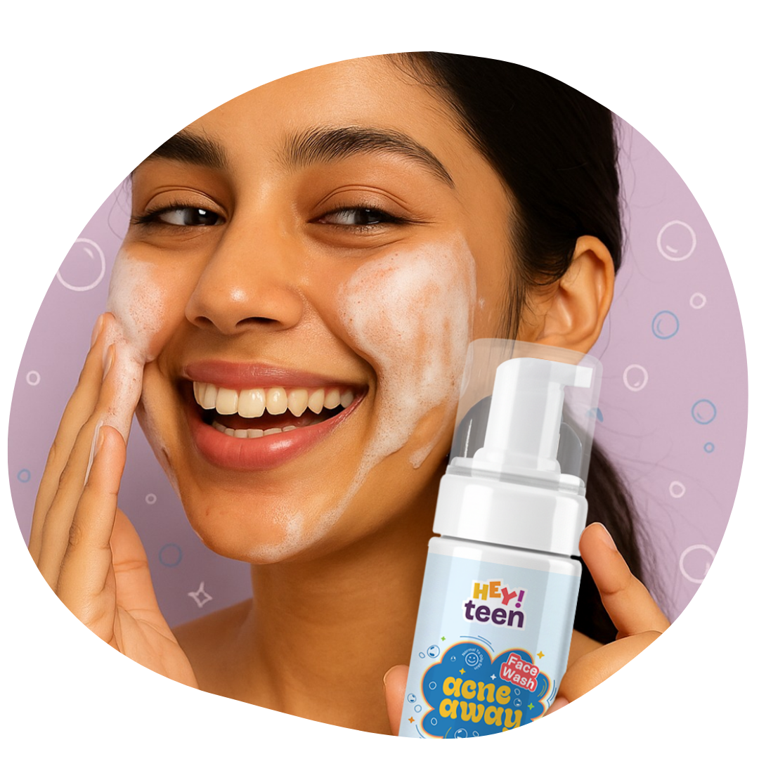 Our Acne Away Face Wash is designed for teen skin — gentle, effective, and super fresh.